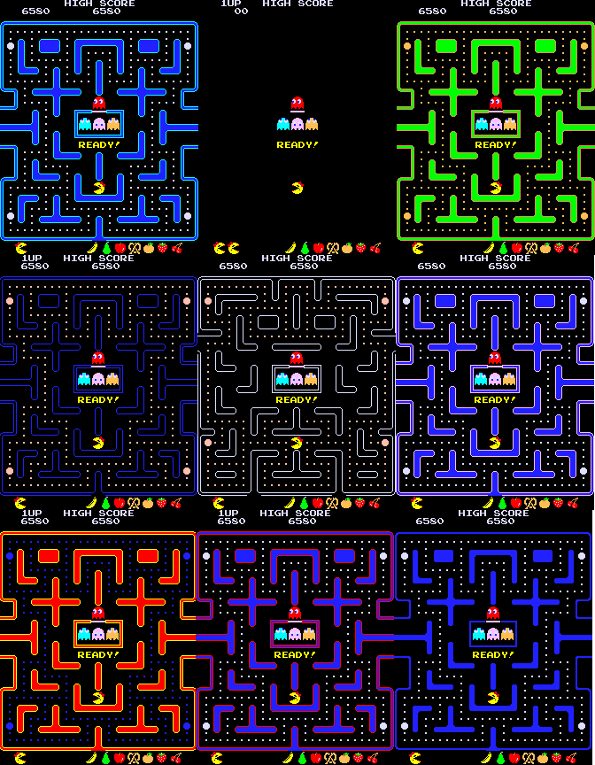 more mazes, and more challenging ghosts. Over 100,000 Pac-Man and over 150,000 Ms.